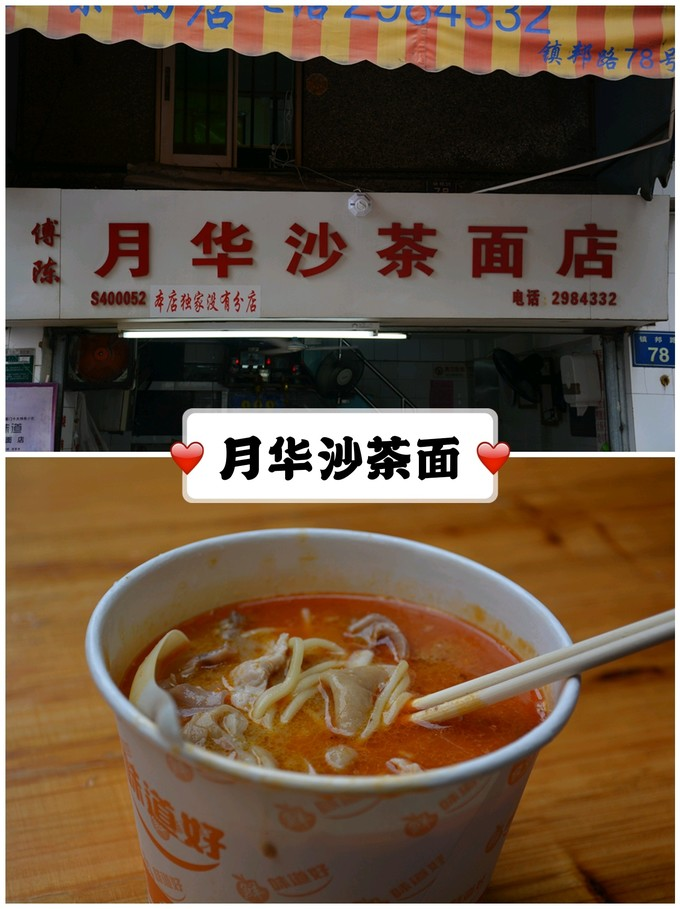 沙茶面是沙茶中最平常的一种做法,带点南洋沙嗲的味道,也带点咖喱的味道,却是很稠密、浓艳的咖喱色调。面是黄色的莜面或者碱水面,细嫩有韧劲,拉长不断,弹力不破。不用多煮,在热锅水里捞烫一会就出锅。碗底铺着一两片脆生生的生菜叶,再盖上丰富的加料,就是一碗相当正宗的闽南沙茶面了。加料不限于小虾、鱿鱼、卤蛋、猪肝、猪心、肥肠、鸭血等等,随便一家店铺可能都有个十几种,让你当场选择困难。