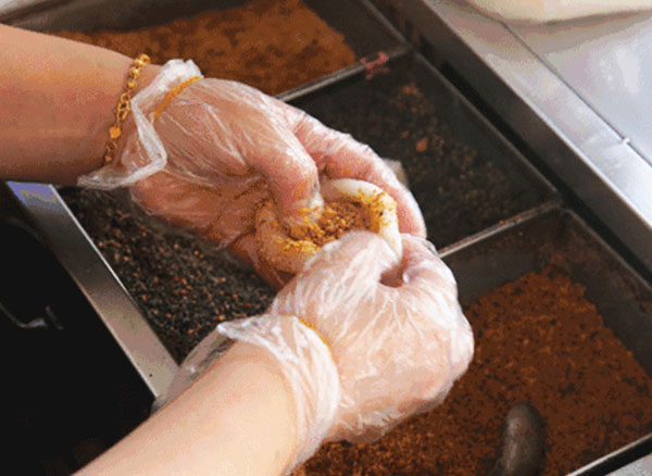 麻糍绝对是厦门人心中的糯米美食代表之一,陪伴好几代人。糯米蒸熟捣成糯米团子后捏扁,再在里头包入喷香的芝麻末、花生碎、白糖,滚上一圈芝麻末。圆滚滚萌嘟嘟的像个小兔子。芝麻、花生各种坚果香气裹挟着糯米自身的米香,不会过甜,配茶也很适合。