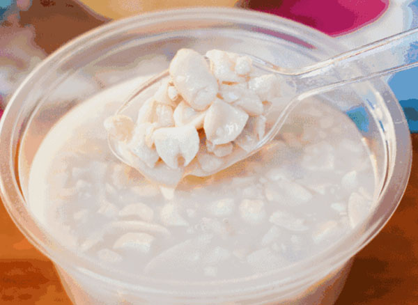 厦门有一句方言:“顶开花,下结子,大人小孩,爱吃呷(得)要死”,说的就是花生汤。花生汤也是厦门美食的一大特色。街头巷尾随处可见,普及率堪比其他大城市中的奶茶店。这又是一道用料简单但做法讲究的小吃。精挑细选的花生仁用沸水去除外膜,再加入适量的糖继续熬煮。奶白色的汤汁里,花生仁酥烂不碎、入口即化、甘甜拿捏的刚刚好,不会过头。当地人吃花生汤还会加蛋,加了蛋花的花生汤,口感更丰富柔顺。