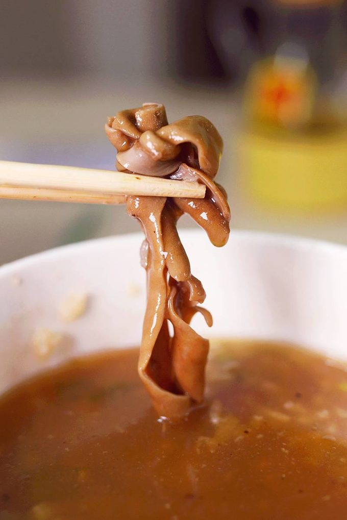 除了鸭肉,可以添加的配料也有20来种,将一只鸭的各个部位分解得淋漓尽致,鸭小肠、鸭心……当然也少不了绝配的油条,不可谓不丰富。