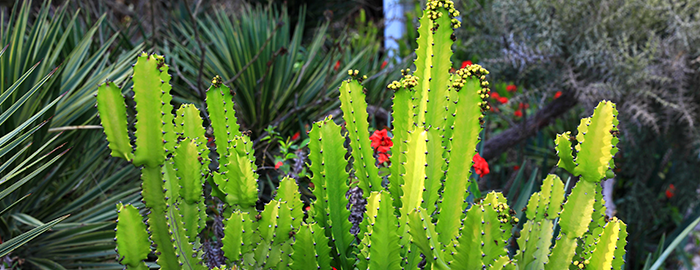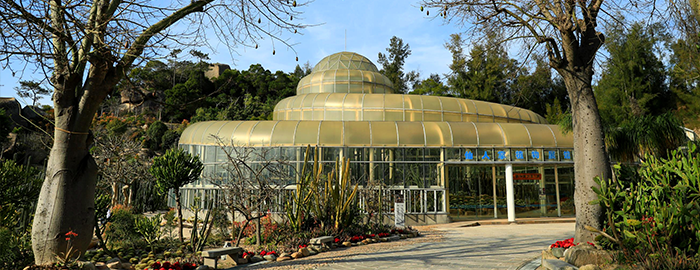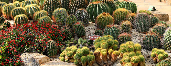 선인장과 식물 전시관은 2000년 6월에 개관하였고, 면적은 약 800㎡로 중국에서 가장 다양한 선인장 식물을 전시하고 있습니다. 전시관 안에는 장엄한 금호군(金鯱群), 중국에서 가장 높이 크는 코끼리선인장(武伦柱) 등, 그의 다양함과 기묘함에 탄복하는 선인장과 식물이 80여 속(属) 400종(种) 이상(종 이하 식물단위 포함)이 있고, 안과 밖의 형식이 서로 다른 작은 전시관은 집체와 개체의 통일된 아름다움과 선인장과 식물 경관의 예술적 정취, 그리고 다육 식물의 형태학적 기이함과 운치를 두드러지게 보여줍니다. 이는 수년간 다육식