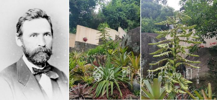 这株帝王凤梨全名是格拉齐卷瓣凤梨 Alcantarea glaziouana,隶属凤梨科帝王凤梨属,是巴西特有种,仅分布在里约热内卢。格拉齐卷瓣凤梨是典型的岩生植物,只生长在热带雨林中湿润的石壁上。随着巴西城市建设的进展,热带雨林面积不断缩减,该物种的野外分布也是越来越少。这个种的种加词“glaziouana”是为纪念曾在巴西工作,并为凤梨科植物收集做出巨大贡献的19世纪法国植物学家著名植物学家奥古斯特·弗朗索瓦·玛丽·格拉齐(Auguste François Marie Glaziou)。