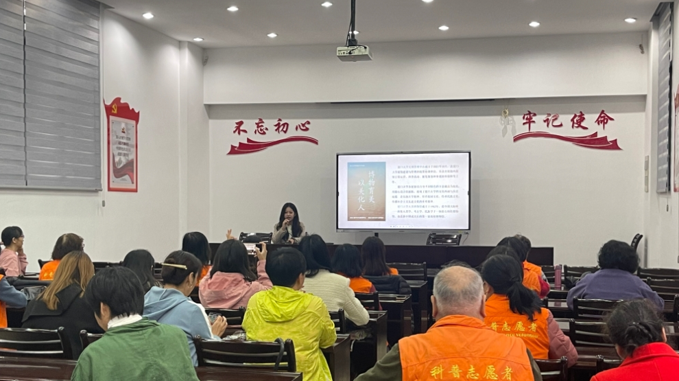 12月16日上午,科普馆邀请厦门大学人类博物馆讲解员、厦门市文艺评论家协会会员方若薇老师,为植物园志愿者带来一场别样的自然主题讲座——《四时有趣——厦大文物里的春夏秋冬》。