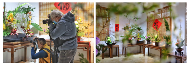 花艺馆以“翰墨春晖”为主题,展示中国当代文人书画、篆刻、拓印、雅玩文创,结合插花艺术,营造文化创意与喜迎新春的艺术氛围。沉稳的印记,灵动的笔触,竹帘之下,一室皆是悠然古韵。仿佛,岁月风平,百川到海,日照万顷落霞,若隐若现的是水畔寻花的身影。当花艺与传统文化照面,即横生这一段雅致的情结,诠释着忙碌人生里的几许余闲。