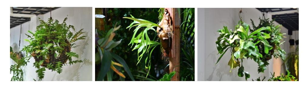 展览以鹿角蕨属植物为主进行造景,在展馆之中,可以欣赏到姿态各异的鹿角蕨属植物: