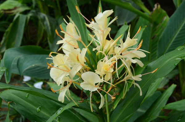 厦门市园林植物园的姜目植物区始建于2015年,目前一期建成面积约2.5公顷,收集栽培有芭蕉科、姜科、美人蕉科、蝎尾蕉科、竹芋科、旅人蕉科、兰花蕉科、闭鞘姜科8个科400多种植物。依托姜目植物区资源优势,蔡邦平研究员团队开展了姜科植物的资源收集、育种与开发应用研究,近年来在姜花属新品种杂交育种方面获得新突破。