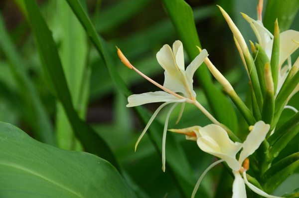 ‘银蝶’姜花是一个纯黄色系的新品种,且香味淡雅清香。其唇瓣大部、花丝、退化雄蕊和花瓣等均为不同程度黄色,远看形如因黄色的蝴蝶,因此命名‘银蝶’。