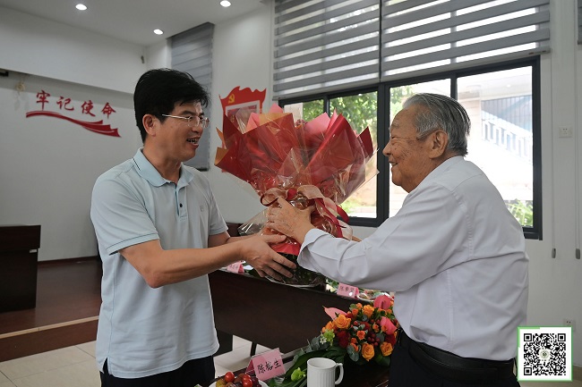 图三 蔡伟中局长向陈榕生先生献花