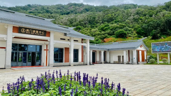 南门游客中心的建筑风格为新闽南风,以现代建筑为主体,完美融合红砖古厝廊墙的传统元素,搭配上灰蓝色的燕尾脊,庄重不失清新,传统又兼俏皮。