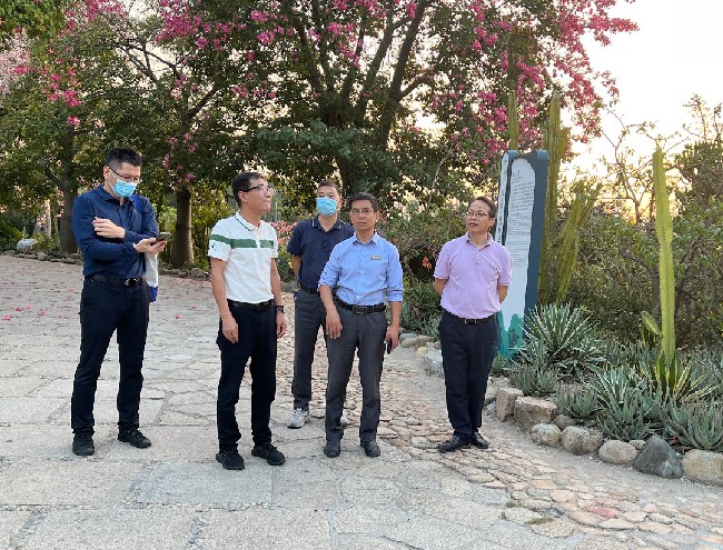 考察组实地调研了我园南门、智慧指挥中心及多肉植物区等建设成果,并现场听取了创建相关工作汇报。钟海林副局长简要介绍了植物园创建国家5A级旅游景区收获的成效以及目前迎检工作开展情况,并感谢省文旅厅在创建过程中给予的监督和指导,希望省文旅厅继续予以支持,助力植物园创建为国家5A级旅游景区。