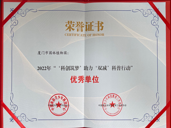 日前,为表扬优秀、宣传典型,中国科协青少年科技中心、中国青少年科技教育工作者协会发布《关于公布2022年“‘科创筑梦’助力‘双减’科普行动”优秀单位的通知》,厦门市园林植物园获评2022年“‘科创筑梦’助力‘双减’科普行动”优秀单位。