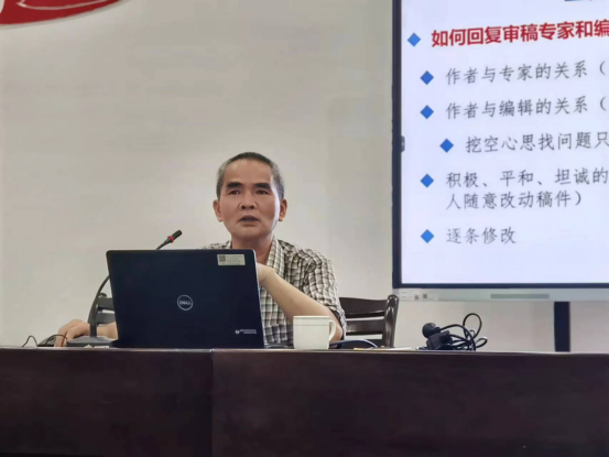 首先,邱仲潘副教授从编辑的角度与我们分享了论文投稿及改稿的流程,包括与期刊(审稿人)沟通技巧、如何面对编辑部的拒稿等经验。他表示,编辑与投稿人是互相成就的关系,彼此保持积极、平和、坦诚的态度,才能让论文有更好的呈现。
