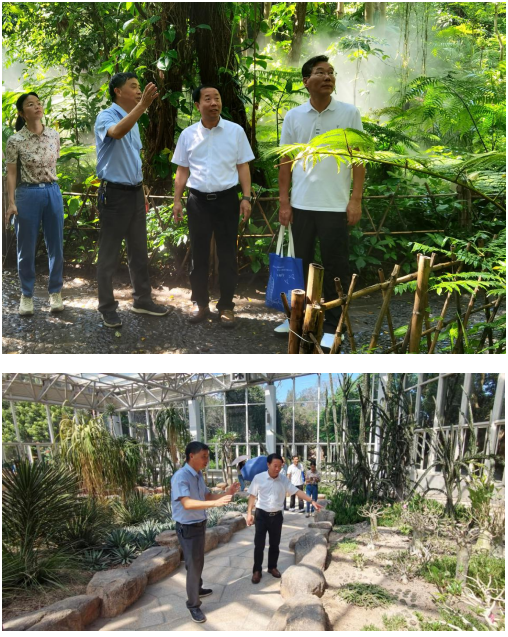 王梅松副局长一行前往了热带雨林区、多肉植物区、南门山海观景步道等区域,实地检查了园区建设与管理情况,随后在百花厅会议室听取了我园近期工作汇报。王梅松副局长对我园近几年创建国家5A旅游景区以来,在专类园区的建设与管理、物种多样性保护工作表示充分肯定,对我园今后特色专类园区的规划与提升提出了宝贵意见。丁印龙主任代表植物园对王梅松副局长一行莅园检查表示欢迎,并希望省林业局在今后的工作中继续给与我园大力指导和支持!