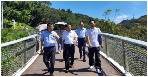 7月12日上午,省林业局副局长王梅松带队一行检查指导植物园建设工作,主管局曹国华副局长、林文佳副处长以及我园丁印龙主任、蔡邦平副主任陪同检查工作。