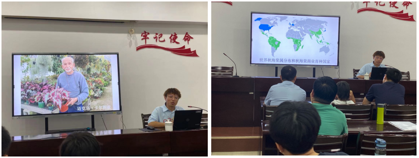 秋海棠属植物是我园特色植物类群之一,作为中国野生植物保护协会秋海棠专业委员会理事单位之一,我园现已收集500余种秋海棠,自主培育并登录多种秋海棠新品种。为普及秋海棠属育种技术相关知识,提高我园科技人员专业素养,优质高效地推动我园秋海棠杂交育种工作,我园邀请国际秋海棠属栽培品种登录负责人、中国野生植物保护协会理事、北京花乡花木集团有限公司科研所总工、美国秋海棠协会(American Begonia Society)理事——董文珂(高级工程师),于2023年8月23日在西厅会议室举办专题讲座——秋海棠属育种的过去、现在与未来。