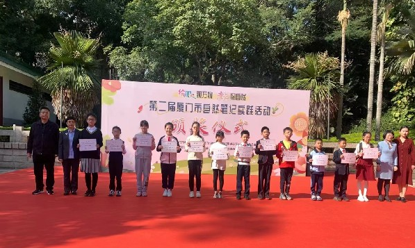由厦门市科学技术协会、厦门市教育局、厦门市关心下一代工作委员会主办,厦门市思明区科学技术协会、厦门市思明区教育局、厦门市园林植物园共同承办的“绘眼观万物 童心探自然”第二届厦门市自然笔记实践活动颁奖仪式于日前在我园举行。厦门市科学技术协会副主席马荣根、厦门市科学技术协会科普部部长颜伟强、厦门市教育局三级调研员陈静、厦门市关工委办公室主任王之胜、思明区科学技术协会主席许佳娜、思明区教育团工委副书记陈慧雯、我园园林科研科科长陈松河和科普馆长梁育勤出席颁奖仪式并为获奖师生颁发奖状。
