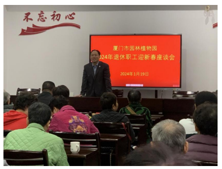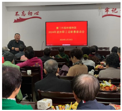 俗话说,过了腊八就是年,一年一岁一团圆。在新春佳节来临之际,我园于1月19日组织召开“厦门市园林植物园2024年退休职工迎新春座谈会”。园领导班子成员与60余名退休职工欢聚一堂,畅舒情谊,共话发展。园副主任邢元磊主持座谈会,向退休职工致以节日的问候,对他们支持植物园工作表示感谢。