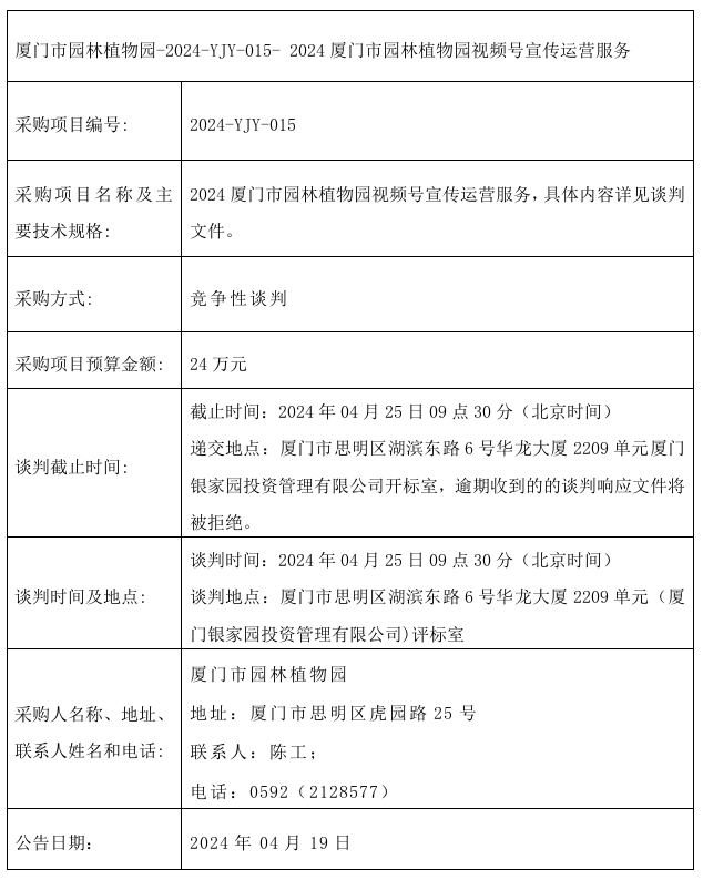 2024厦门市园林植物园视频号宣传运营服务采购公告