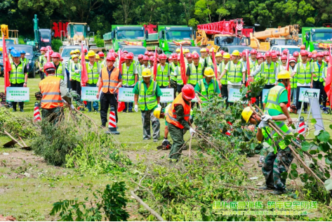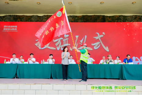 6月28日,2024年厦门市园林绿化抗台风应急抢险演练在市园林植物园国防园举行,来自全市的39支园林绿化应急抢险队近400人参与演练。