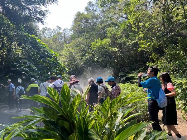 在我园专业讲解人员的带领和讲解下,台湾研学团重点走进了“雨林世界”景区和多肉植物区等园区,引导他们探索植物的生存智慧,了解在不同的生态环境下植物对环境的适应以及植物的特点。在“雨林世界”景区里,学子们目睹了植物绞杀现象、探寻了板状根的秘密、发现美丽的空中花园等一系列雨林植物的典型特征;在多肉植物区他们参观了仙人掌科植物展馆、多肉植物展馆、森林性多肉植物展馆三个室内展馆和室外展区,探寻了荒漠环境下多肉植物的生存之道……