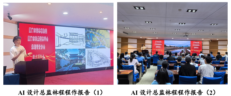 报告会邀请了三位长期从事园林规划设计的专家,分别作三个专题学术报告。第一位报告人是厦门云卯设计有限公司技术总监周易剑,报告的题目是《绿地海绵建设的计算方法》,报告从园林专业人员的视角出发,分享绿地海绵关键控制指标的计算方法,解决城市绿地目前较难兼容“海绵”“生态”“景观”的困境;第二位报告人是厦门云卯设计有限公司副总经理、园林高级工程师汪金白,报告的题目是《厦门海绵城市建设依据与思考》,报告梳理了厦门绿地海绵建设的相关政策、规范、标准、导则,介绍海绵城市建设工程施工图设计导则及审查要点,并结合厦门海绵城市样板工程,进行反思和改进;第三位报告人是福建省惠和城市规划设计有限公司AI设计总监林程程,报告的题目是《AIGC在园林景观中的技术应用》,报告主要介绍了现阶段人工智能在技术应用上的概况,重点阐述人工智能在园林景观方案设计上的应用,同时介绍人工智能在市政和建筑等相关行业的应用,并分享人工智能应用心得。