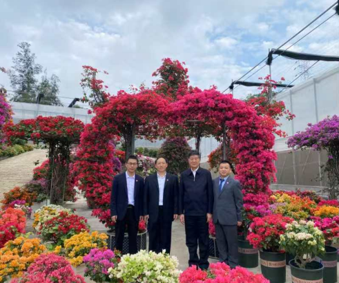 2024年11月23日,中国花卉协会副会长、国家林业和草原局生态保护修复司原司长赵良平和中国花卉协会联络部主任梁建国出席首届三角梅产业高质量发展大会后,莅临我园国家三角梅种质资源库参观指导。