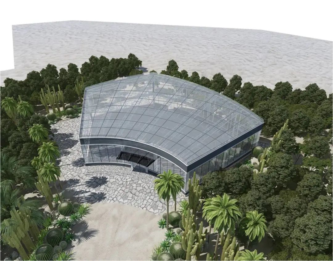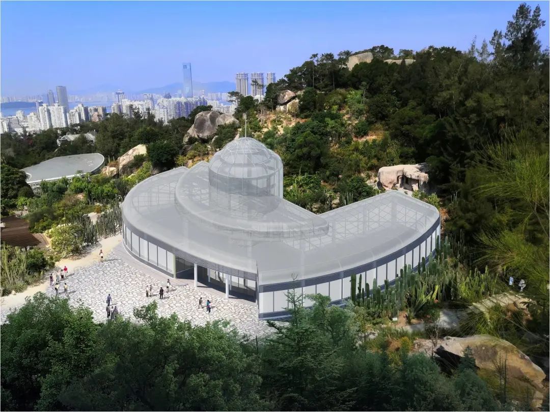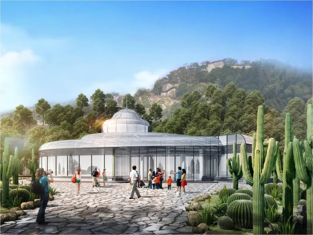 多肉植物区一、二展馆亚克力板老化,影响了美观和透光,存在安全隐患。本次改造工程主要是进行一展馆围护结构更新改造,二展馆主体结构及围护结构的加固及更新改造,总改造面积达到3143平方米。最终目的是让西侧的二展馆多肉展厅“扇贝”与东侧的仙人掌科展厅“海螺”崭新亮相,相互呼应。