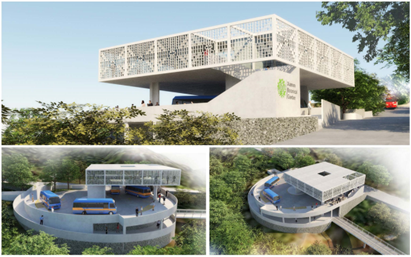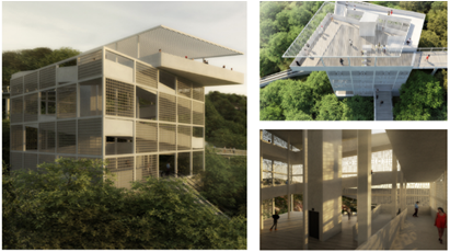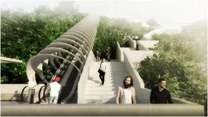 从效果图上,我们可以看到观景扶梯、楼梯、眺望台、公交站等。