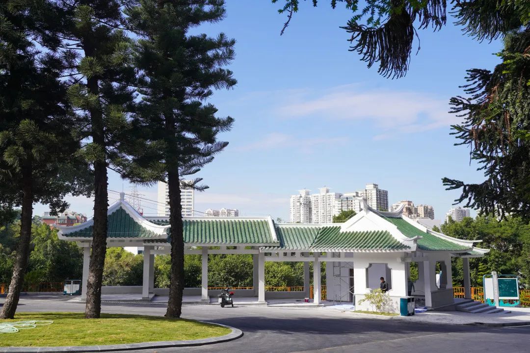 植物园从建园至今,建筑一直沿用仿古风格,因而此次改造的亭廊也延续了园林小品的风格。植物园西大门游客中心、百花厅、其他小亭榭也基本都是这种风格。