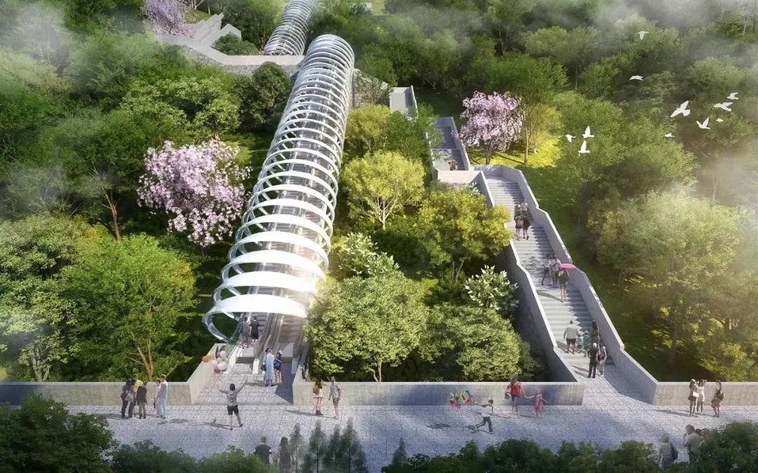 通过上行观景扶梯即可到达西山园附近