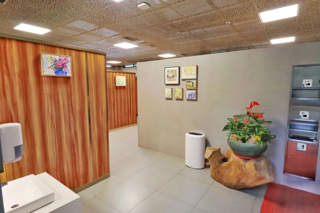 为打造温馨优美的公厕环境,植物园对旅游厕所内部进行特色化装饰:以植物为主材料,采用多种花艺手法,结合植物园风景和花卉题材的画作进行美化,使旅游厕所内的景观与园文化同步提升。