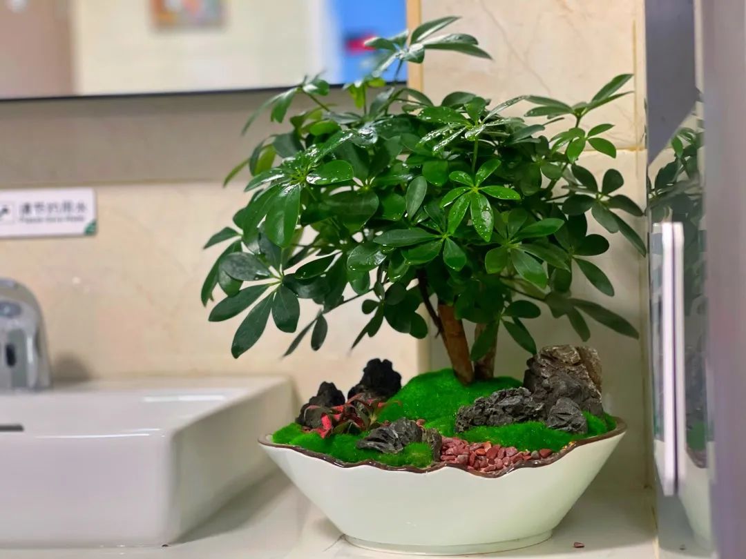 在植物布置上,根据旅游厕所内的环境,采用不同形式的植物组合进行美化,布置了文竹、阴石厥、小鸟巢蕨、长寿花、花叶豆瓣绿等小盆栽近500盆,组合盆栽8组,中大型植物6株,盆景5盆等。