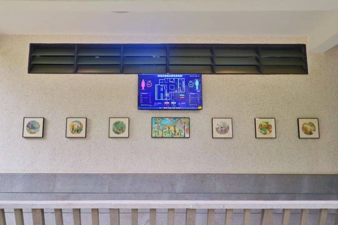 公厕入口处的屏幕显示着厕位剩余情况及空气质量情况,方便游客使用;并且能显示公厕人流量等指标,当卫生环境不达标时,平台会自动提醒相关人员进行保洁,既方便游客也利于管理。