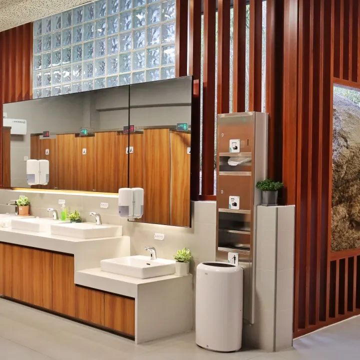 正悠然呈现于植物园的旅游厕所中