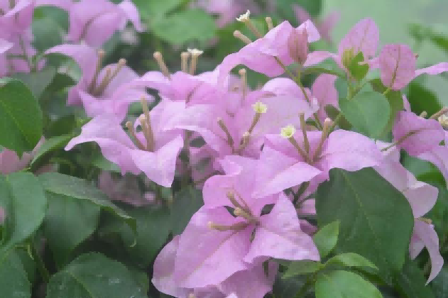 品种特点:该品种叶片边缘卷曲,花苞片颜色淡雅清新,抗逆性强,株型丰满,适合作为天桥三角梅盆栽应用。