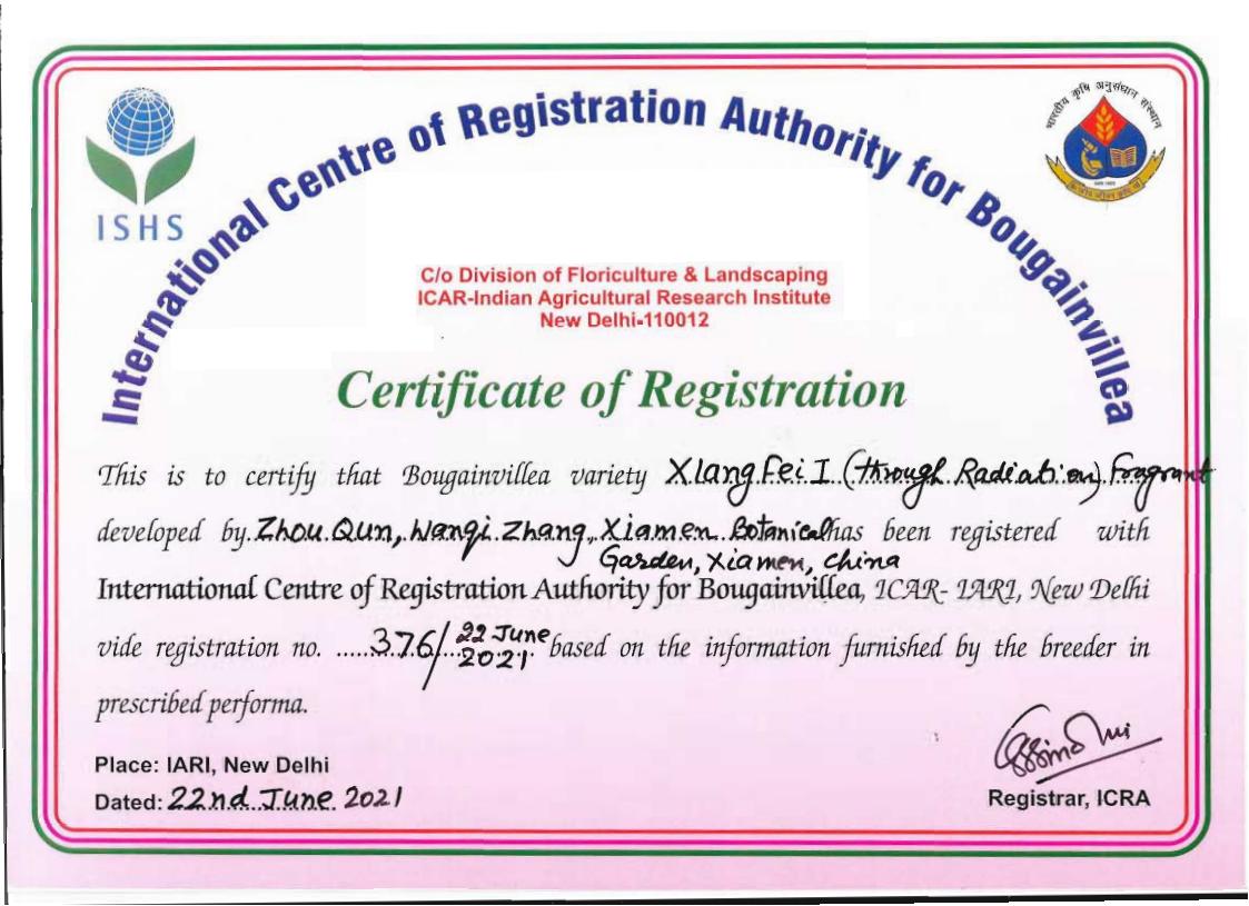 品种特点:该品种不仅颜色艳丽,更具有三角梅中极其罕见的淡淡香味。它不像某些花朵的香味那样浓郁,而是恰到好处地散发出一种清新淡雅的气息,沁人心脾,色香俱全,园艺观赏价值较高。
